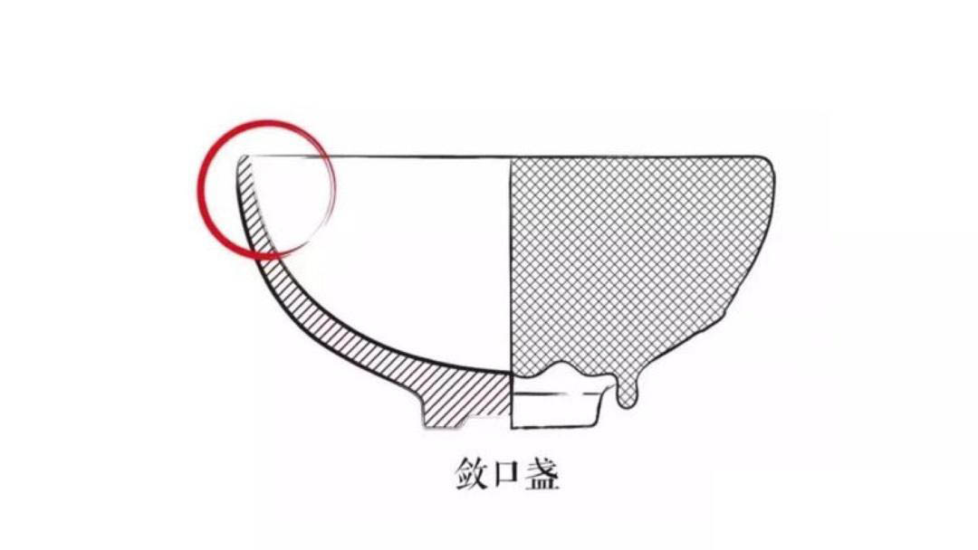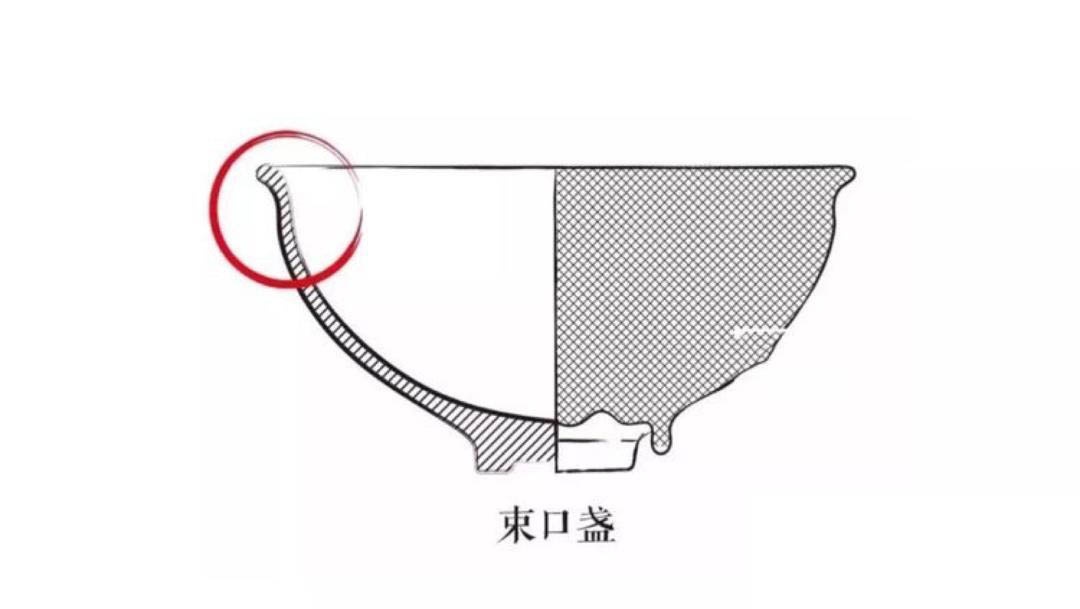 敛口盏整体外形和束口较为接近,但敛口盏在盏口下沿处没有凹槽,而是快到盏口位置的时候,开始往内微微收敛,整体造型比较丰满。