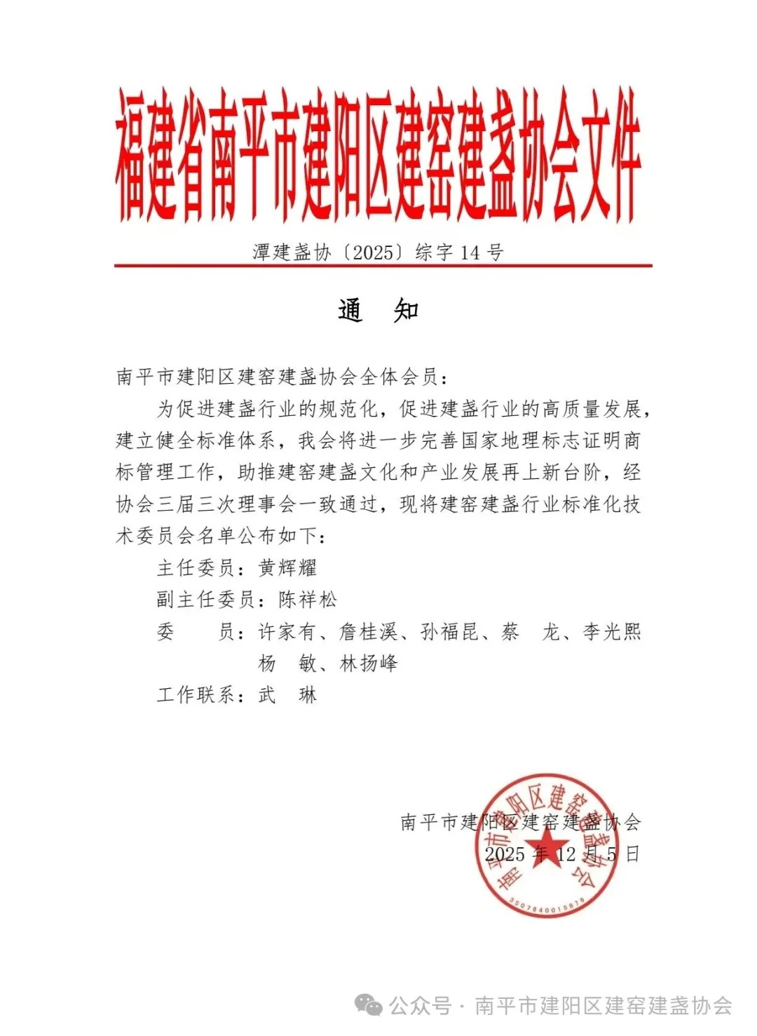 南平市建阳区建窑建盏协会建窑建盏行业标准化技术委员会名单