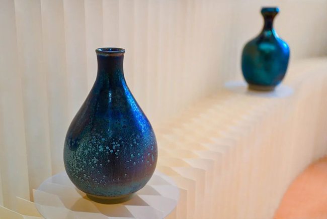 “很多陶土原料是单一的,但是烧制技艺可以是多样的。我们以平潭蓝眼泪为创作灵感,将大自然奇观借助烧制技艺展现出来,以茶具的形式走向市场,更好地推广平潭特色,也表达我们对这片土地的热爱和尊重,得到了很好的反响。”陈祥松坚信,艺术的多元生长与商业良性融合,将赋予作品更强大的发展生命力,未来他将持续创新输出,创作出富有特色的产品。