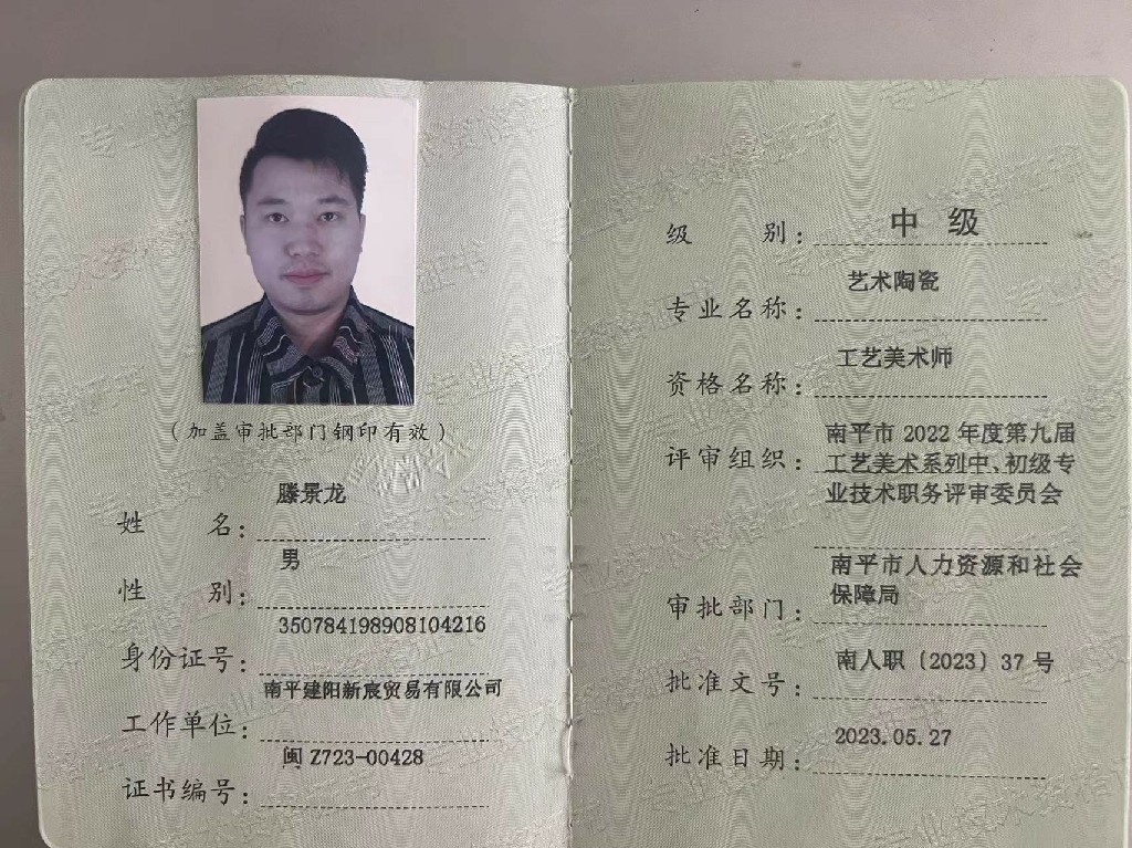 中级工艺美术师-滕景龙 滕景龙 南平市建 […]