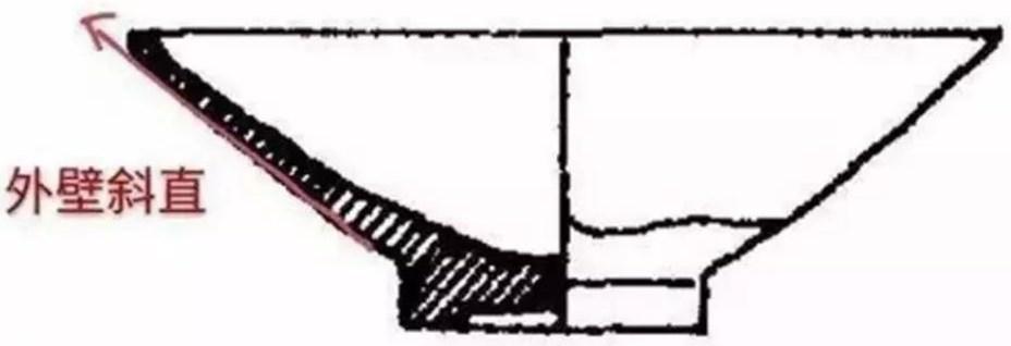 敞口型的特征:外壁斜直,轻微有弧度。基本都是接近直线的。其实这种就是咱们经常说的“斗笠盏”,因为此类盏整体造型像极了斗笠,所以就形象的这么去叫了。